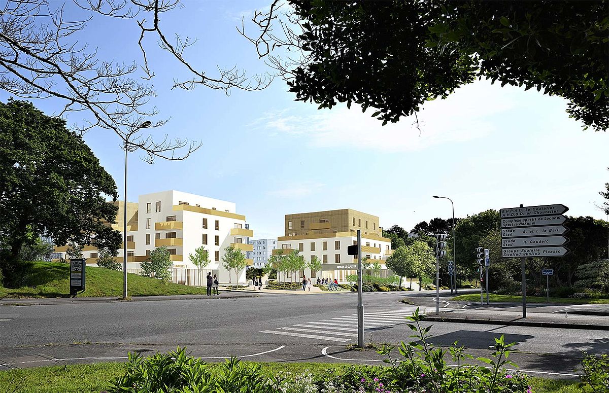 Perspective de la future entrée du quartier de Kerfrehour-Châtaigneraie - Architecture Atelier Arcau